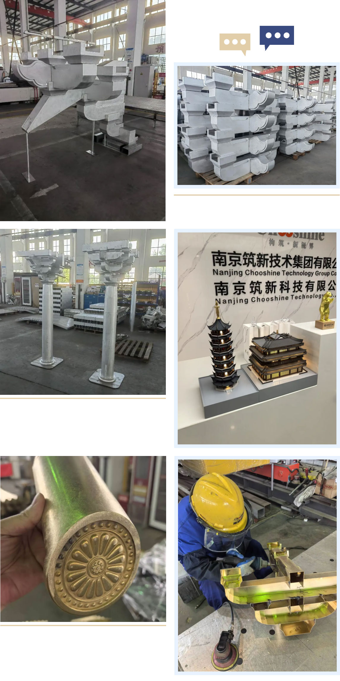 王兆东董事长重点介绍了公司"绿色文化建筑"业务板块。该业务运用先进的金属曲面成型技术和表面处理工艺,通过标准化、模块化的生产方式,将传统文化元素与现代建筑完美融合。据介绍,筑新科技的合金建筑技术已在南京鸡鸣寺药师塔、宁波金峨禅寺万佛塔、昆山华藏寺等多个标志性项目中成功应用,开创了文化建筑的新范式。