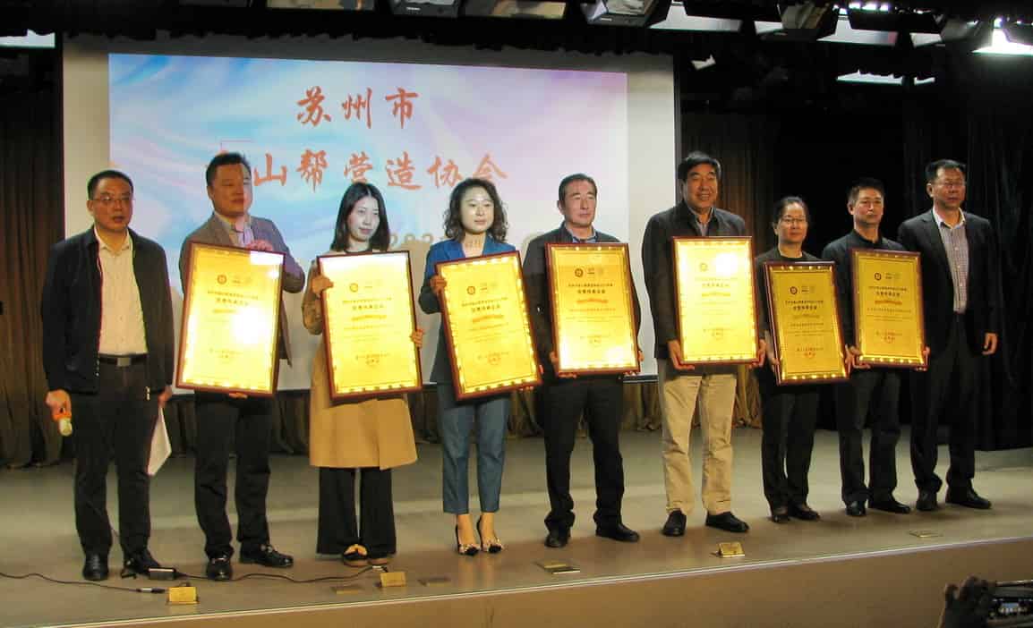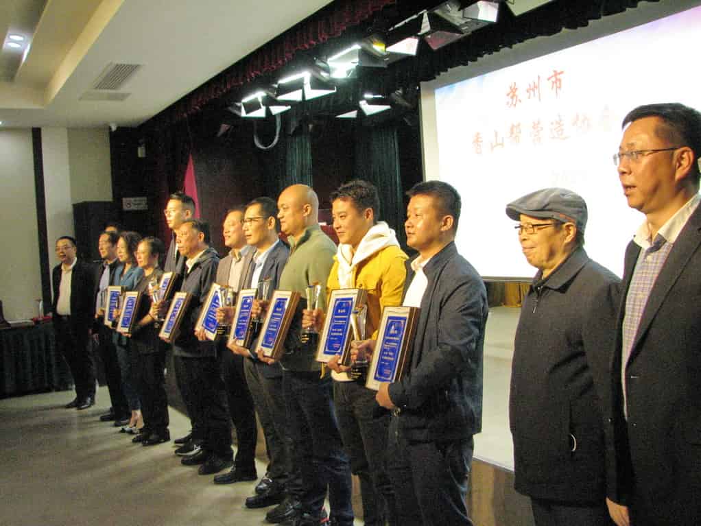 为了鼓舞干劲,协会对2021年度评出的各项优秀项目进行了颁奖,还对朱建明、朱凤良、朱留兴、朱伟良、陆革民等第四批列入“香山帮技艺传承人”名录的技术人员进行了授牌,同时对十项获得第三届“香山杯”古建园林优质工程奖项目进行了颁奖。本届传承人和香山杯评审活动特邀了苏州市文广旅局非遗产办、苏州科技大学、苏州农业职业技术学院、苏州市香山帮营造协会的有关专家和香山帮技艺国家级代表性传承人组成“评审小组”,对参评项目进行一一严谨评审,并通过初审、评审会评审、公示等环节,在22个参评项目中评选出了10个获奖项目。评委们认为:本届香山杯的参评项目,无论在数量和项目质量上都高于往届,说明香山杯的影响力在不断深入,但是我们也看到了传统香山帮的技艺也面临着流失和变异的危机,只有在传统建筑的修缮工程项目中才能完全保持着香山帮传统技艺。评委们希望古建筑企业在当前的环境形势下,我们香山帮工匠要守住初心,保持香山帮传统特色。