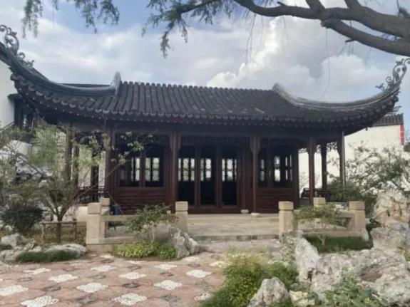 第四进为前楼厅;第五进为办公及配电间。办公三区为四面亭及厕所。